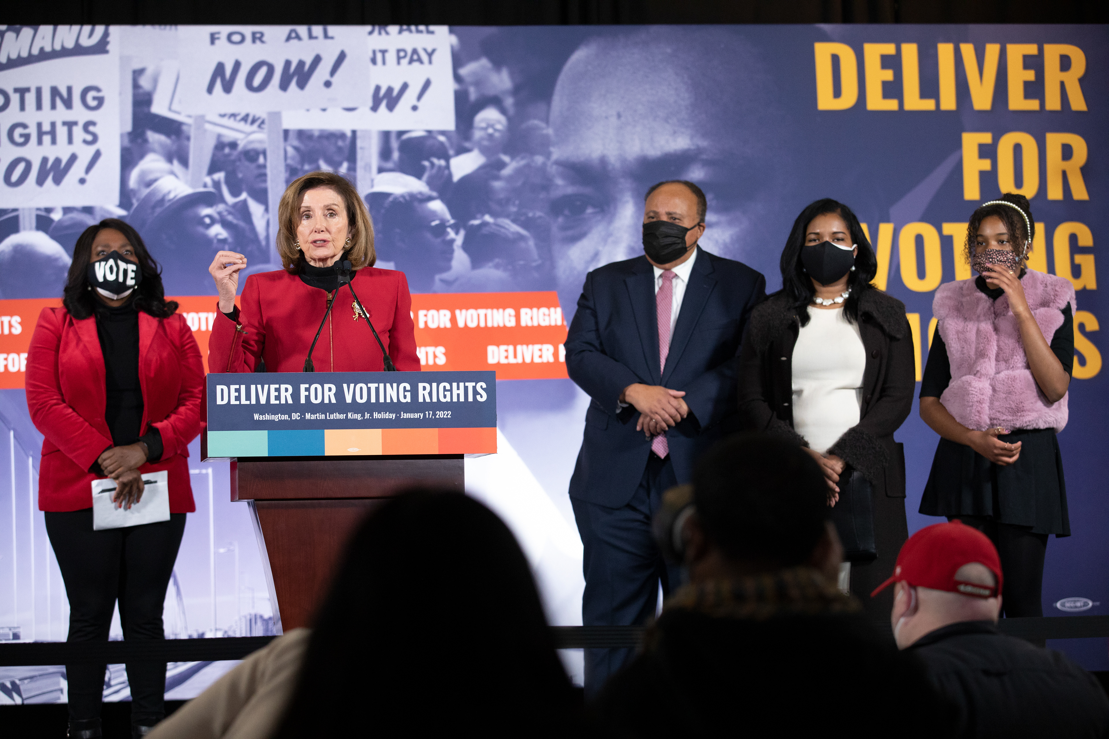 It was exciting to design for and attend the Deliver for Voting Rights event in Washington, DC. The event was divided into two parts- the first included a march across the Frederick Douglass Memorial Bridge and the second included a press release that featured Martin Luther King III and Nancy Pelosi. Design collateral for this event included a stage backdrop and pillars, credentials, virtual graphics, and venue signage.